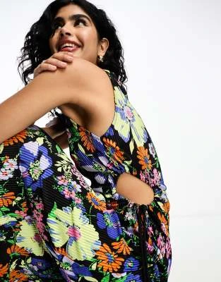 ASOS DESIGN – Vestito Milkmaid Midi Nero E Rosso A Fiori Con Dettagli Arricciati E Maniche Svasate