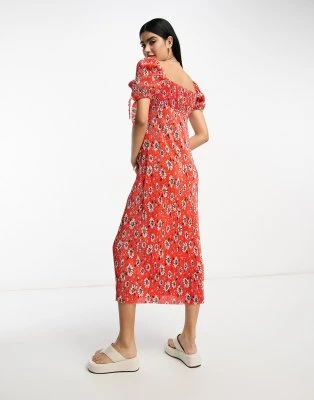 ASOS DESIGN – Vestito Da Giorno Midi Arricciato Con Maniche Ad Aletta Bianco Con Stampa Con Ciliegie