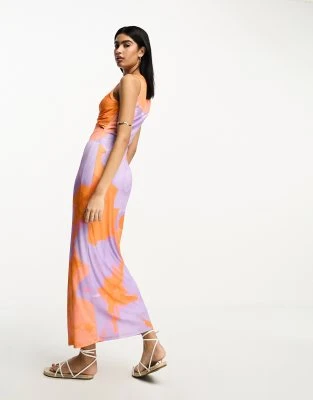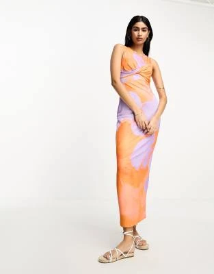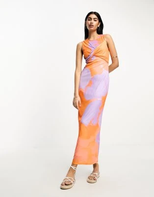 ASOS Maternity ASOS DESIGN Maternity – Vestito Midi Lilla Con Scollo Ad Anello E Maniche Con Volant
