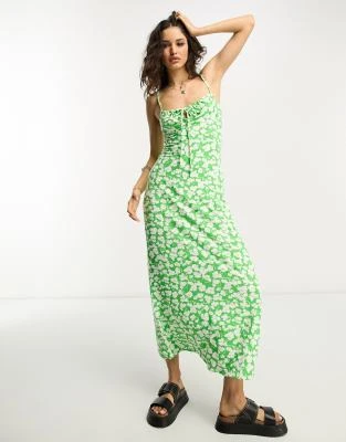 ASOS DESIGN – Vestito Da Giorno Midi Arricciato Con Maniche Ad Aletta Bianco Con Stampa Con Ciliegie