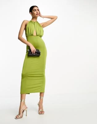 ASOS Maternity ASOS DESIGN Maternity – Vestito Midi Lilla Con Scollo Ad Anello E Maniche Con Volant
