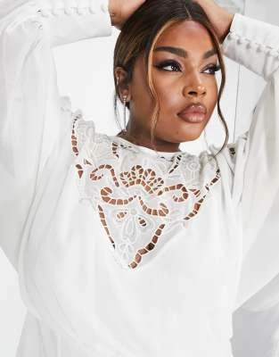 River Island Plus – Vestito Midi Beige Con Volant E Scollo Bardot