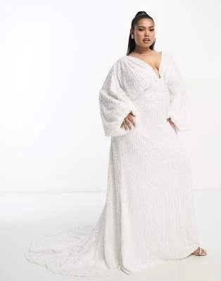 Flounce London Plus – Vestito Lungo Con Maniche Con Volant E Scollo Profondo In Raso Rosa Vivace