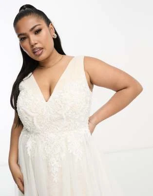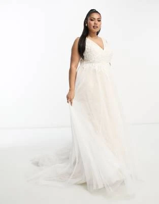 Vila Curve – Vestito Lungo Da Damigella Verde Salvia Con Corpino In Pizzo