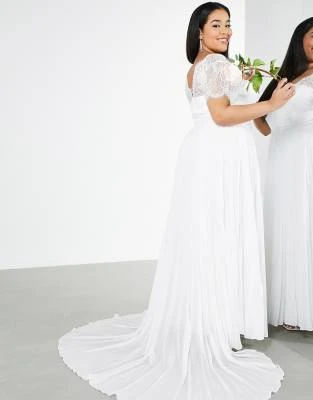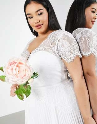Vila Curve – Vestito Lungo Da Damigella Verde Salvia Con Corpino In Pizzo