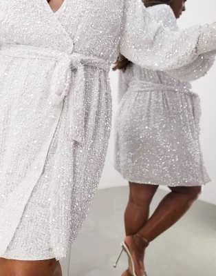 ASOS LUXE Curve – Vestito Midi Decorato Bianco E Blu A Fiori Con Maniche A Sbuffo