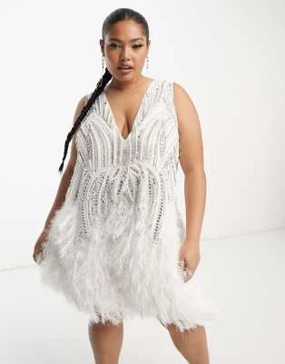 ASOS Edition Curve – Vestito Corto Con Maniche A Campana E Corpetto Ricamato Giallo