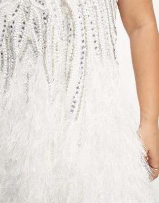 ASOS LUXE Curve – Vestito Midi Decorato Bianco E Blu A Fiori Con Maniche A Sbuffo
