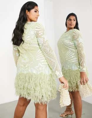 ASOS LUXE Curve – Vestito Corto Da Cerimonia Con Paillettes E Fiori Multicolore