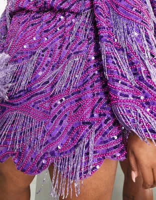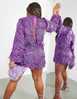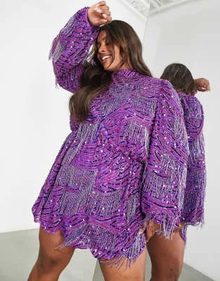 ASOS Edition Curve – Vestito Corto Con Decorazioni E Frange Con Perline Color Cipria