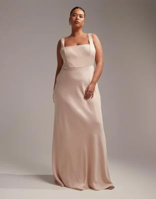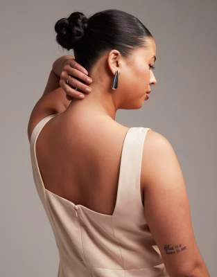ASOS EDITION Curve – Vestito Lungo Allacciato Al Collo Con Arricciature In Raso Verde Salvia