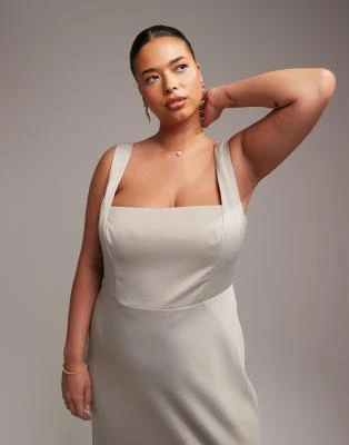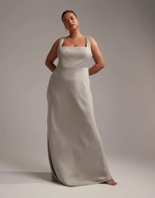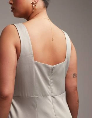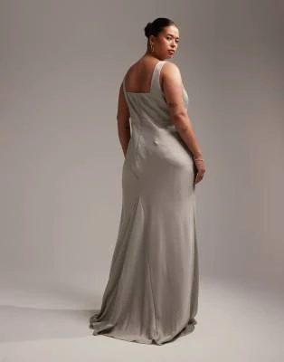 ASOS EDITION Curve – Vestito Lungo Allacciato Al Collo Con Arricciature In Raso Verde Salvia