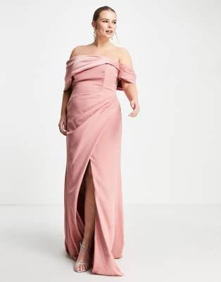 Vila Curve – Vestito Lungo Da Damigella Verde Salvia Con Corpino In Pizzo