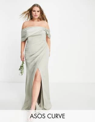 River Island Plus – Vestito Midi Beige Con Volant E Scollo Bardot