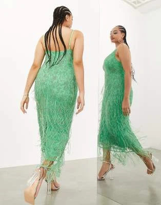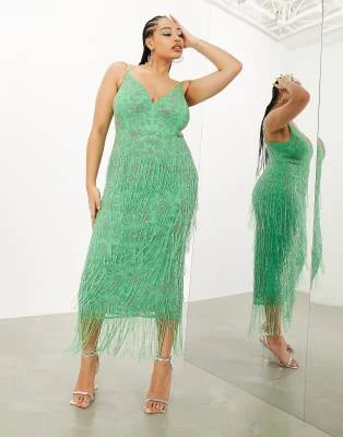 ASOS Edition Curve – Vestito Corto Con Decorazioni E Frange Con Perline Color Cipria