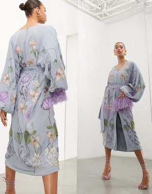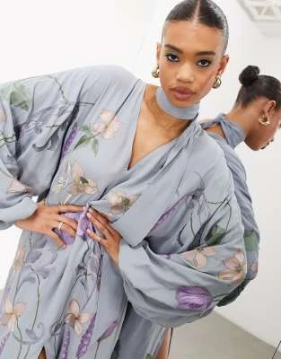 ASOS Maternity ASOS DESIGN Maternity – Vestito Midi Lilla Con Scollo Ad Anello E Maniche Con Volant