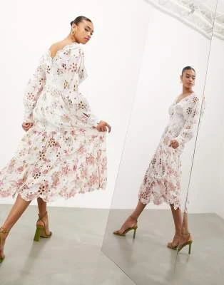 ASOS DESIGN – Vestito Da Giorno Midi Arricciato Con Maniche Ad Aletta Bianco Con Stampa Con Ciliegie