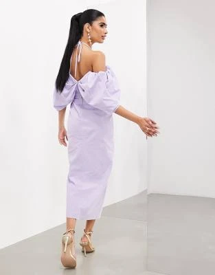 ASOS Maternity ASOS DESIGN Maternity – Vestito Midi Lilla Con Scollo Ad Anello E Maniche Con Volant