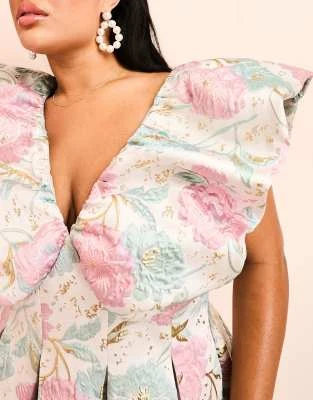 ASOS LUXE Curve – Vestito Corto Da Cerimonia Con Paillettes E Fiori Multicolore