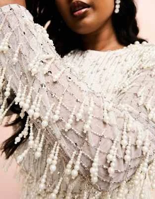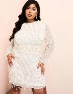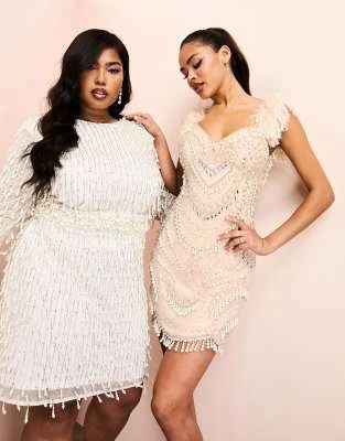 ASOS Edition Curve – Vestito Corto Con Decorazioni E Frange Con Perline Color Cipria
