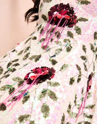 Flounce London Plus – Vestito Lungo Con Maniche Con Volant E Scollo Profondo In Raso Rosa Vivace