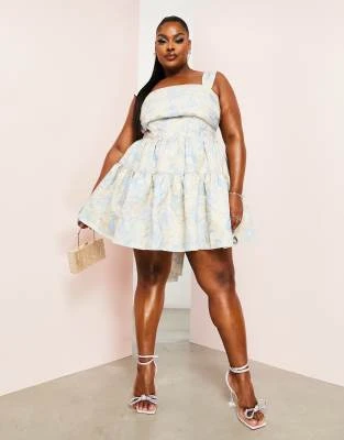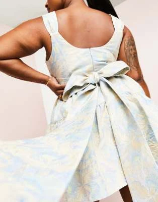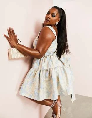 ASOS Edition Curve – Vestito Corto Con Maniche A Campana E Corpetto Ricamato Giallo