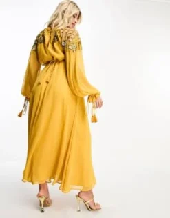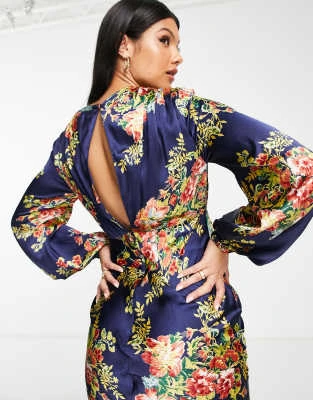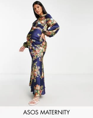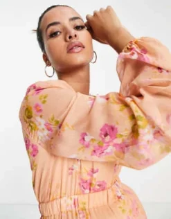 Hope & Ivy Maternity – Vestito Lungo Color Pesca E Ocra A Fiori Con Maniche A Palloncino E Cut-out