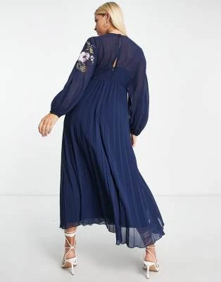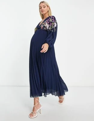 Flounce London Maternity – Vestito Lungo Blu E Verde A Contrasto Con Maniche A Palloncino E Volant