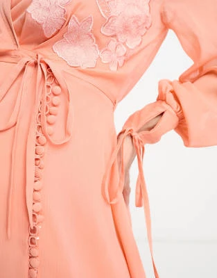 ASOS DESIGN Maternity – Vestito Lungo Accollato Con Allacciatura In Vita E Ricamo Stencil Floreale