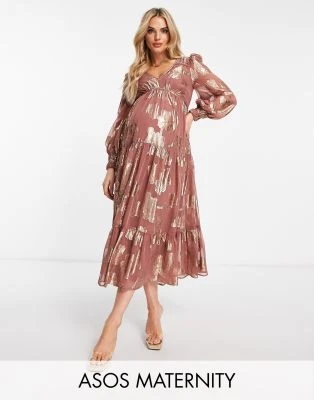 ASOS DESIGN Maternity – Vestito Skater Midi A Pieghe Rosa Tenue Con Scollo Squadrato