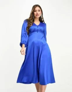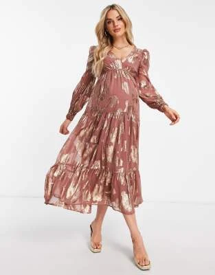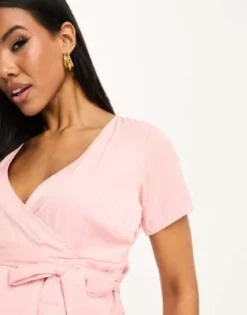 Mamalicious Maternity – Vestito Midi A Portafoglio In Raso Rosa Polvere