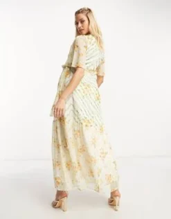 Hope & Ivy Maternity – Vestito Lungo A Portafoglio Verde A Fiori A Contrasto Con Maniche Con Volant