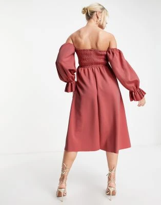 ASOS Maternity ASOS DESIGN Maternity – Vestito Midi Lilla Con Scollo Ad Anello E Maniche Con Volant