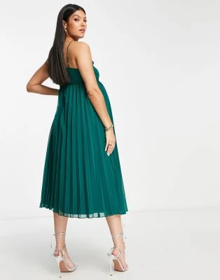 ASOS Maternity ASOS DESIGN Maternity – Vestito Midi Plissettato Color Ruggine Con Spalle Scoperte