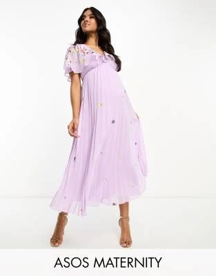 ASOS DESIGN Maternity – Vestito Skater Midi A Pieghe Rosa Tenue Con Scollo Squadrato