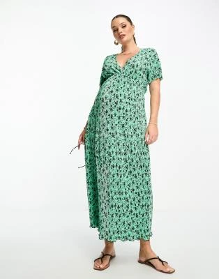 ASOS Maternity ASOS DESIGN Maternity – Vestito Midi Lilla Con Scollo Ad Anello E Maniche Con Volant