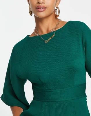 ASOS DESIGN Petite – Vestito Corto Accollato Verde Bosco In Plumetis Con Finiture In Pizzo E Ricamo