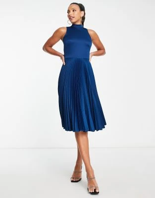 Esclusiva In The Style Tall – Vestito Lungo In Raso Blu Con Scollo Ad Anello E Lacci Sul Retro