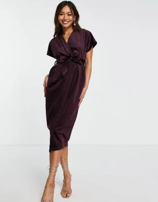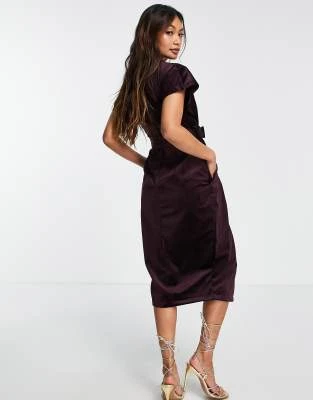 ASOS DESIGN – Vestito Milkmaid Midi Nero E Rosso A Fiori Con Dettagli Arricciati E Maniche Svasate
