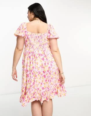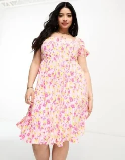 Topshop Curve – Vestito Da Cerimonia Midi In Raso A Fiori Blu