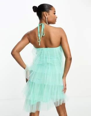 ASOS DESIGN Petite – Vestito Skater Corto In Organza Verde Ricamato Con Inserto In Pizzo