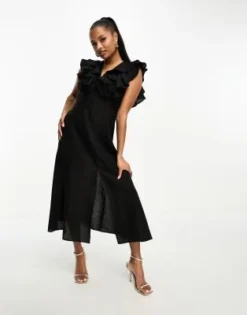 Anaya Petite – Vestito Lungo Per Damigella Monospalla In Tulle Nero
