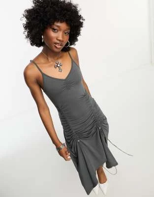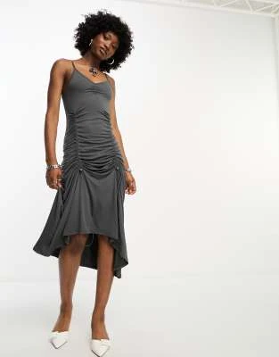 ASOS DESIGN – Vestito Milkmaid Midi Nero E Rosso A Fiori Con Dettagli Arricciati E Maniche Svasate