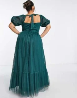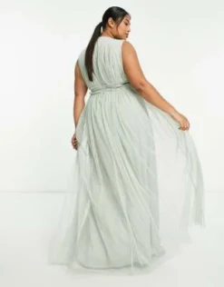 Anaya Plus – Vestito Lungo Da Damigella Verde Salvia Arricciato In Vita Con Scollo A V