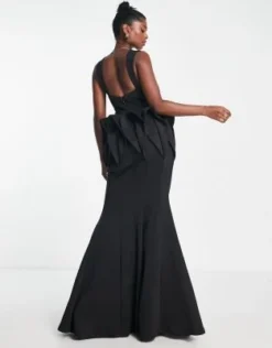 Anaya Plus – – Vestito Lungo Da Damigella Con Volant In Vita Blu Navy Con Scollo A V