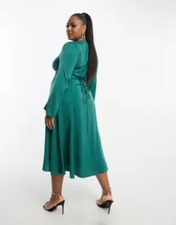 ASOS DESIGN Curve – Vestito A Portafoglio In Raso Verde-azzurro Allacciato In Vita Con Taglio Sbieco