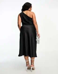 ASOS DESIGN Curve – Vestito Al Polpaccio In Raso Slavato Fluo Con Maniche Voluminose