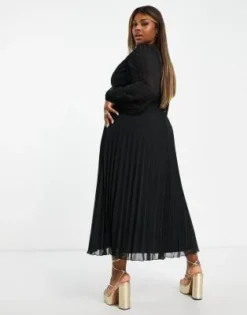 ASOS DESIGN Curve – Vestito Midi Nero A Pieghe Con Scollo Profondo