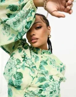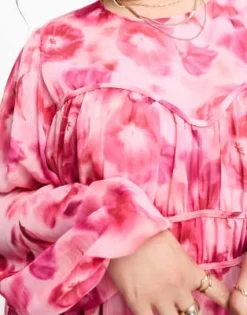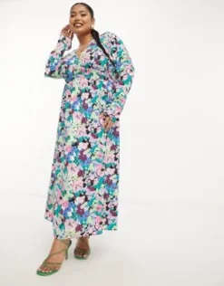ASOS DESIGN Curve – Vestito Lungo A Fiori Con Corpino Arricciato, Bottoni E Volant