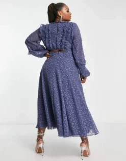 ASOS DESIGN Curve – Vestito Midi Blu Cobalto Jacquard A Pois Con Volant Allacciato Sul Davanti